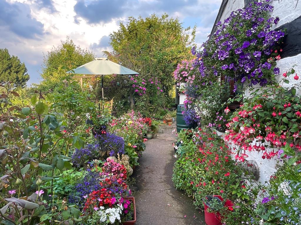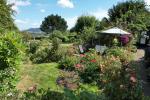 The gardens are about 1/3 acre in size, lovingly tended and simply adorable. No expense has been spared with a variety of colourful flowers and seasonal plants including apple and plum trees, geraniums, over 30 types of roses, peonies, honeysuckle, raspberries and strawberries.