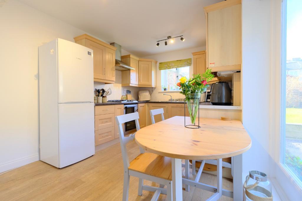 Walk into the welcoming hallway where you will find the pretty 15 ft sitting room with warming log burner and tall ceilings, tasteful beams, a separate handy study/home office, fitted kitchen with dish washer, washing machine, oven and hob and large glass windows letting in the sunshine.