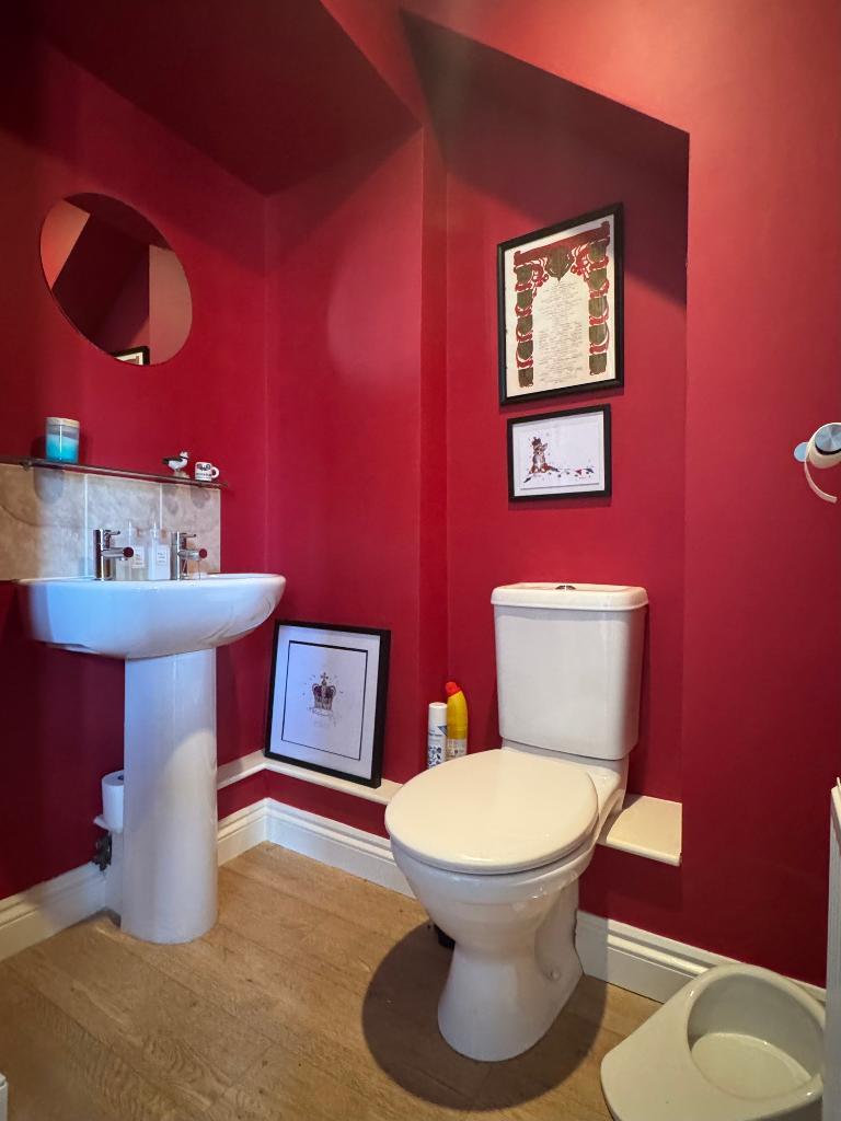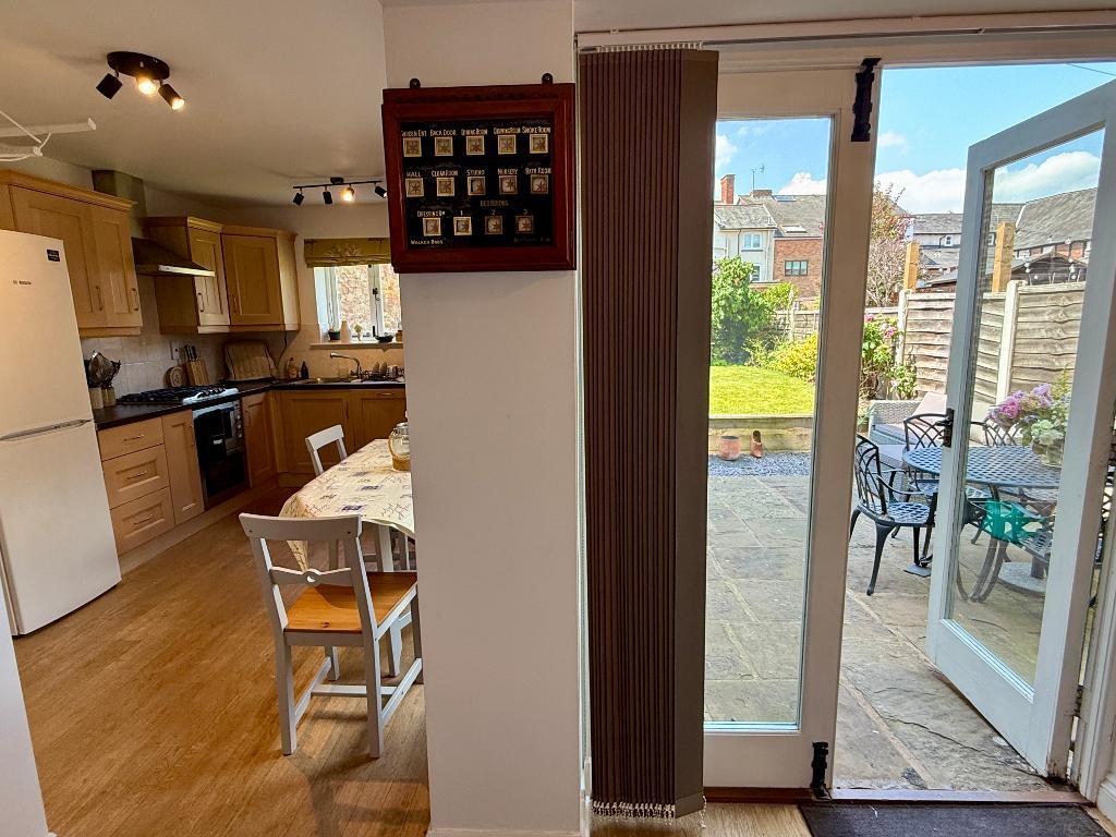 There is a cloakroom, under stairs useful storage and an area to hang coats and pop shoes and boots by the back glass door which leads out to the low maintenance useful patio area, wood store and flat garden,
