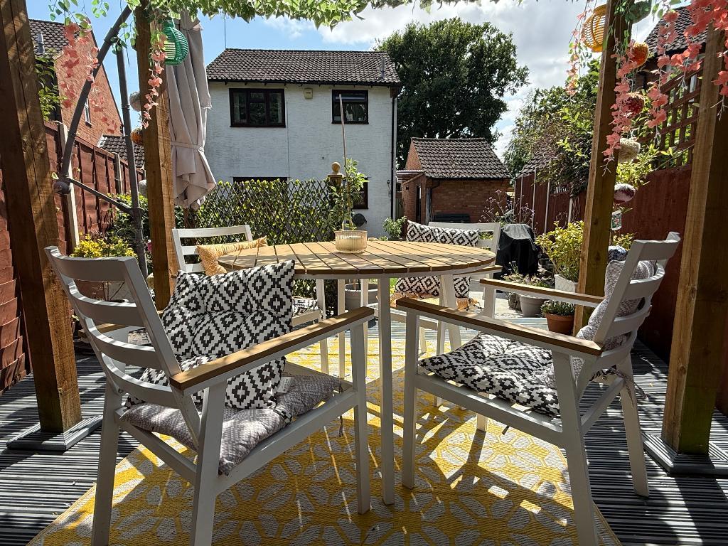 The garden is a good size, flat and low maintenance with plenty of space for children to run around and a nice deck at the rear for the grown ups to sit and unwind! The neighbours I am told are friendly and kind hearted.