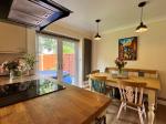 The kitchen is fully fitted and modern with fridge freezer, dish washer, white Belfast sink, strong German flooring and plentiful cupboard space. There is a large space for your kitchen table at the far end of the room and double doors leading out into the garden.
