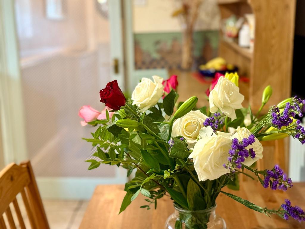 The garden is really pretty, mature with plentiful roses, clematis, bedding plants and has been lovingly tended over the years. It is low maintenance with pretty brick paving and there is an outside tap close to the back door.