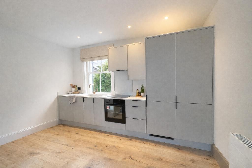 Apartment 11 is the only one bedroom apartment with a private garden. It is positioned at the rear of the building and includes an open plan living area/kitchen, double bedroom, family bathroom, new wooden sash windows with garden and hill views. It is light, airy and quiet. All residents have use of the landscaped, communal gardens too.