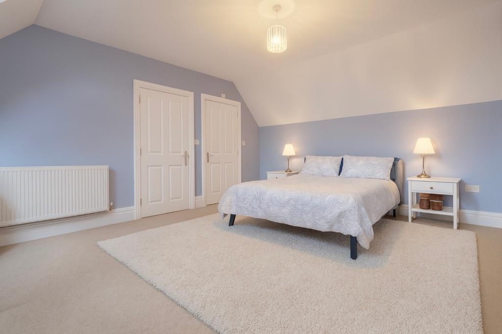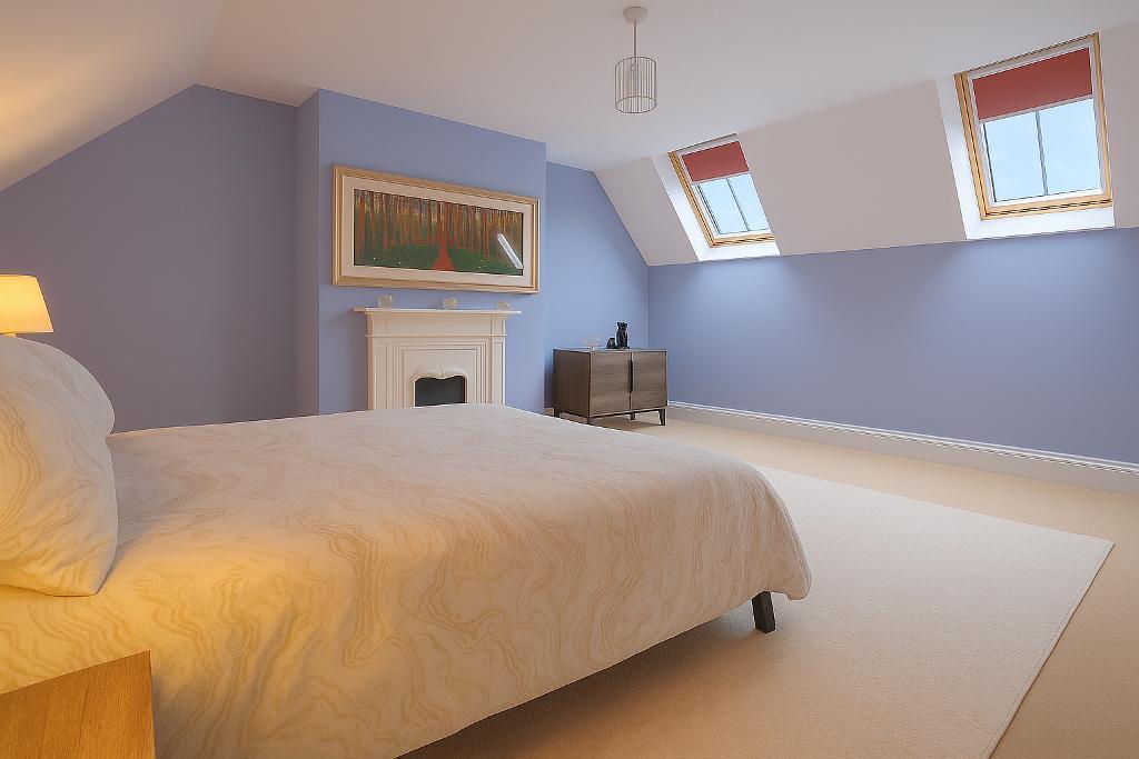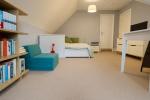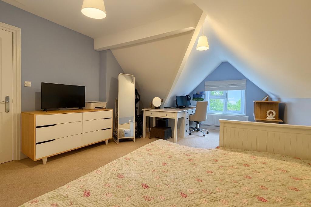 Bedroom 2, off the sitting room, has space for a large double bed, a definitive office area, with views and a surprisingly deep, walk in wardrobe with plenty of storage for clothes and other items.