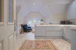 The modern Wren kitchen is striking, with beautiful, white, plentiful quartz work surfaces, a large gas hob and electric oven, free standing fridge freezer, quartz breakfast bar, a large alcove to store your coffee machine, air fryer, toaster and most importantly, extra drawer storage space throughout this splendid kitchen. Including a built in dishwasher and washing machine. At the far end is an inviting seating area where you can enjoy the magnificent views over a morning coffee or tea.