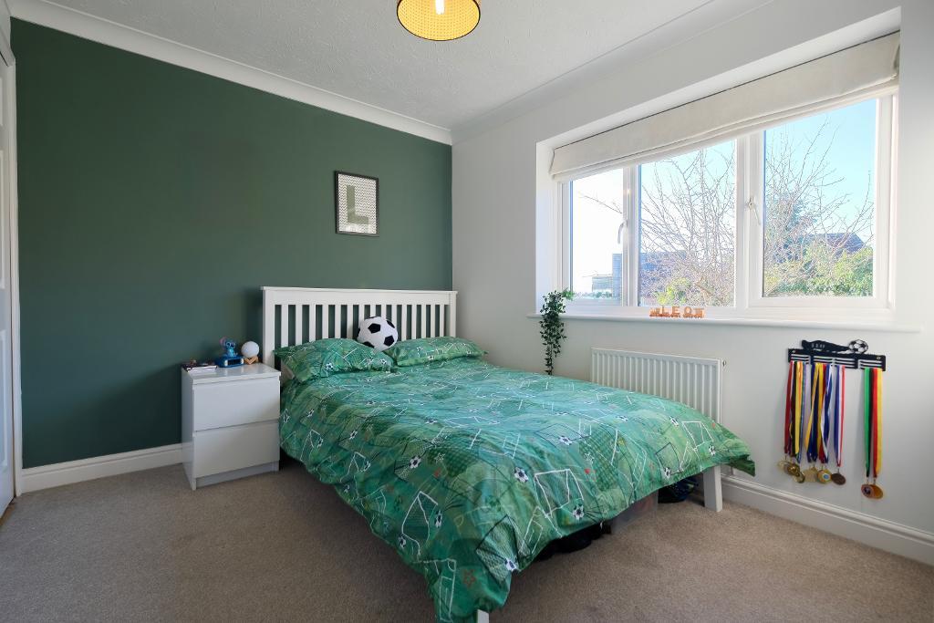 Bedroom two is a generous double overlooking the rear garden with fitted wardrobes, while bedroom three also a comfortable double enjoys similarly attractive front-facing views. Bedroom four is ideal as a single bedroom, nursery or dedicated home office.