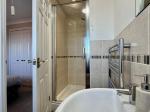 The family bathroom is well-appointed with a bath and electric Triton shower over.