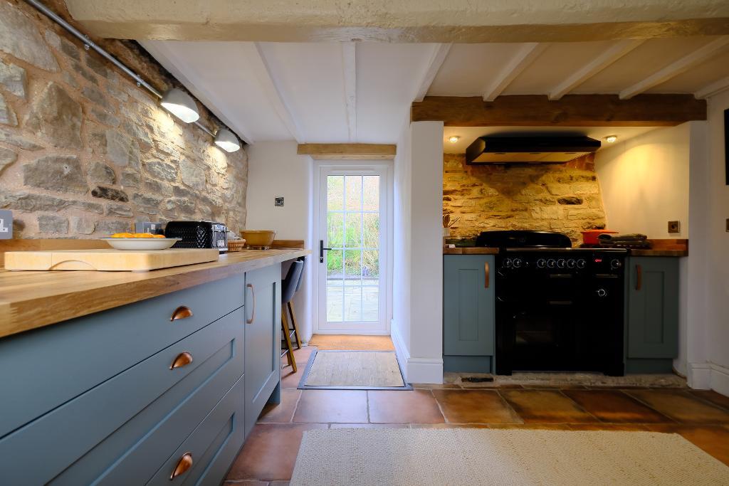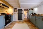 A broad, covered porch opens into an impressive entrance hall immediately establishing the character of the house. The dining room is a particularly atmospheric space centred around a substantial log burner and perfectly suited to long, convivial evenings. The new kitchen has been thoughtfully modernised to include plenty of wooden work tops, a breakfast bar with seating for two, a feature stone wall as well as being fitted with an electric Range cooker blending contemporary practicality with period charm.