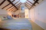 The principal suite is particularly impressive, measuring approximately 14'6 x 13'0 and incorporating a dressing area and en-suite shower room; rare luxuries in a home of this vintage. The bedroom enjoys views across surrounding fields, while a stone chimney breast bears the original construction date offering a tangible reminder of the property's long and distinguished history. A full wall of fitted wardrobes provides excellent storage.