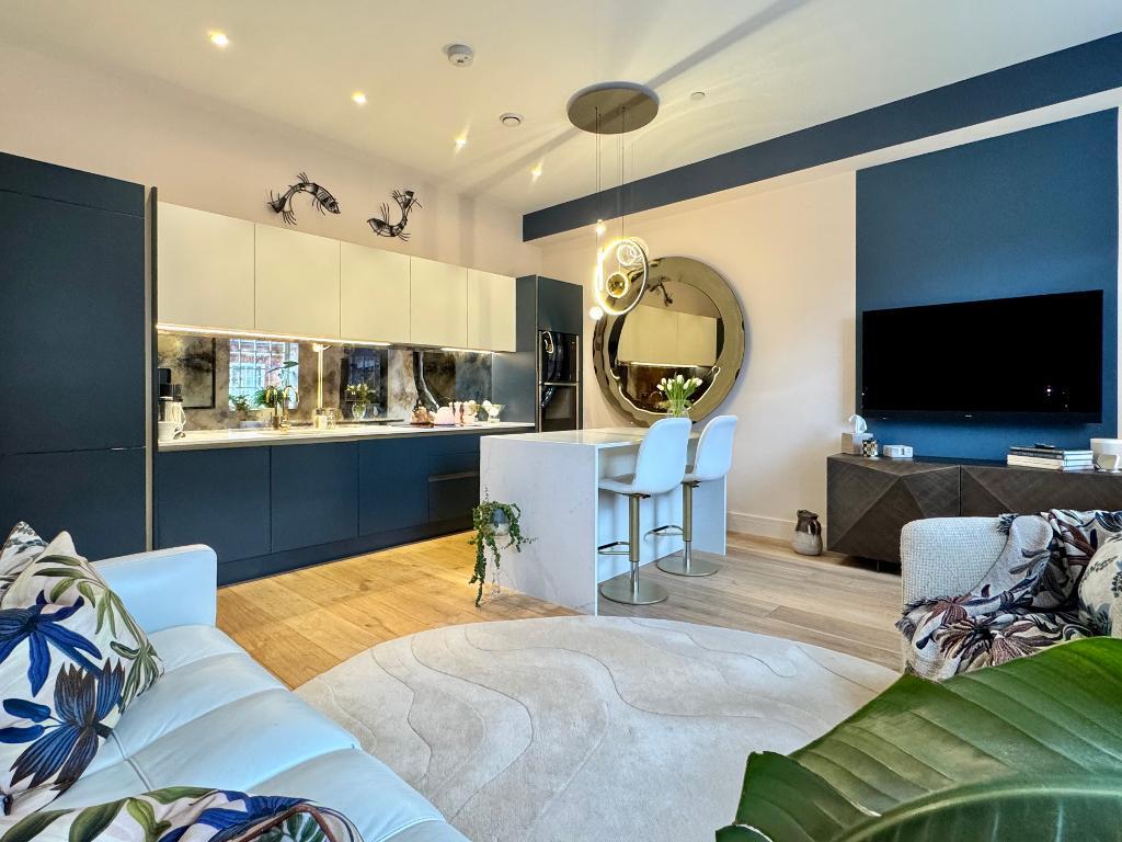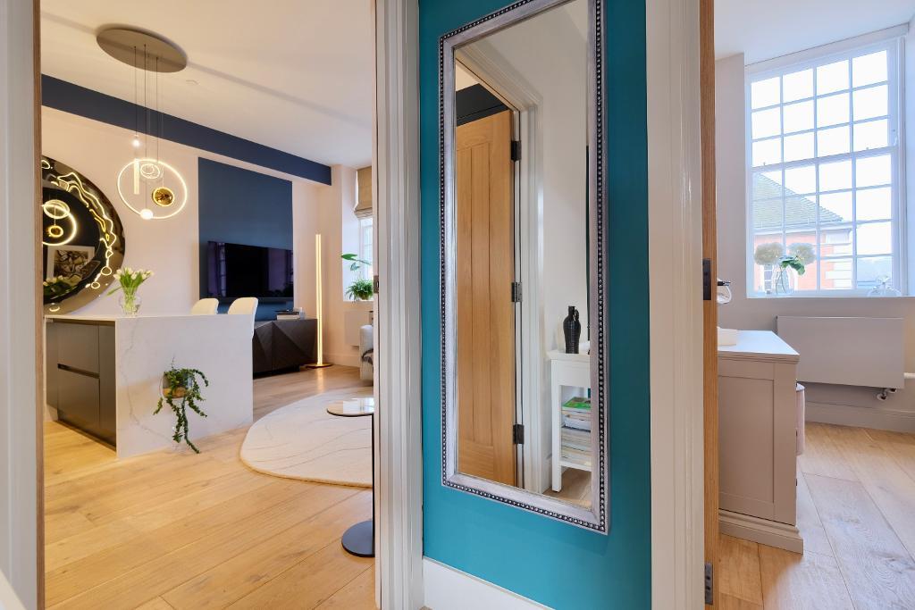 "The original specification was already exceptional, with an Elgar kitchen, a beautifully appointed bathroom with underfloor heating, timber floors to the living areas, solid wooden doors and aged brass ironmongery and fittings throughout. Over time, I have carefully enhanced the space with a bespoke Elgar kitchen island, an antiqued glass splashback that becomes a real focal point, a fully fitted Hammonds Langton wardrobe, and wooden flooring in both bedrooms. Every choice was made to complement the character of the building while creating a contemporary home"
