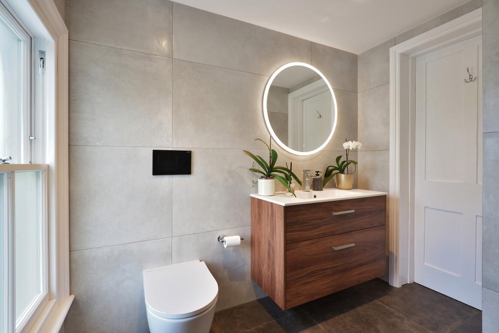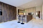 To the rear, the spectacular kitchen/breakfast room forms the heart of the house and a dramatic centrepiece for modern family living. Appointed with a striking Italian Scavolini kitchen, the space features Dekton work surfaces, illuminated display cabinetry and porcelain tiled flooring with underfloor heating. A full complement of premium integrated appliances includes twin remotely controlled ovens, a Bora induction hob with integrated extractor, a Quooker boiling, chilled and sparkling water tap, fridge/freezer with ice maker, dishwasher and built-in coffee machine. Full-height bi-fold doors span the rear elevation, flooding the room with natural light and opening directly onto the sun terrace and gardens - perfect for both large-scale entertaining and everyday life. A stylish utility room sits discreetly alongside, while a versatile sitting room or study is positioned adjacent to a sleek contemporary wet room.