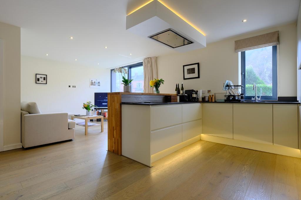 The apartment is secure, energy efficient (EPC rating B), and wonderfully light-filled throughout. At the heart of the home is a superb, contemporary kitchen featuring slimline granite worktops, a full range of integrated Neff appliances, washer dryer, and a Quooker-style boiling tap for instant hot drinks. Additional features include engineered oak flooring, two private balconies, solid oak internal doors, fitted carpets in both bedrooms, sliding wardrobes, and underfloor heating throughout.