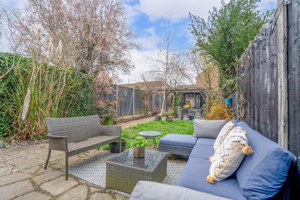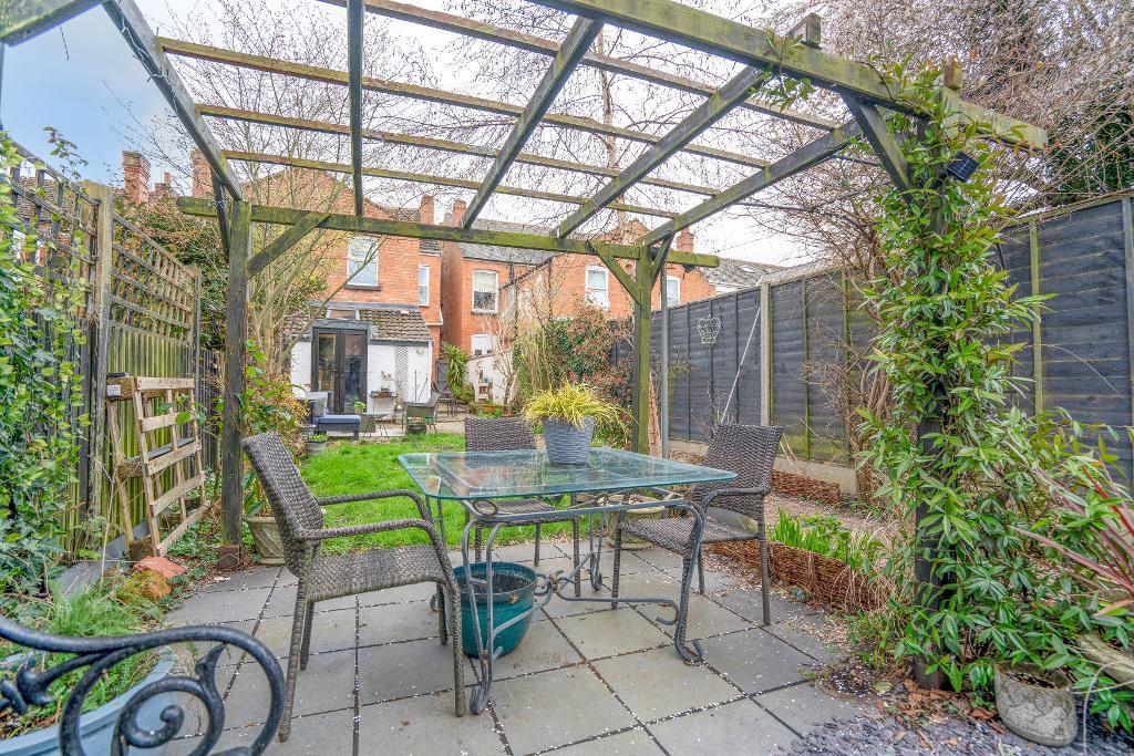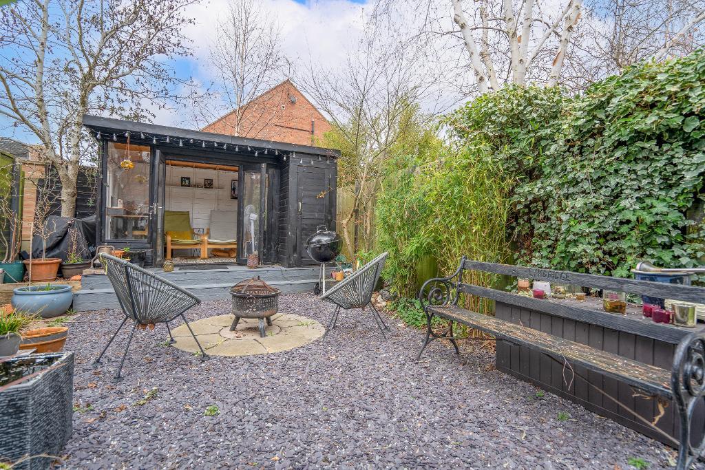 Outside, the rear garden has been thoughtfully arranged to make the most of the sun, with a variety of seating areas and mature planting including fruit trees and silver birch, creating a private and established setting. A recently added summerhouse, with light and power, provides a perfect home office or garden room in which to sit and enjoy the summer sunshine.