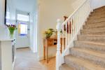 The ground floor offers a natural flow between living spaces, ideal for modern family life. The sitting room is a particularly welcoming space, filled with natural light from a large bay window and centred around a feature fireplace, with ample room for relaxed seating.